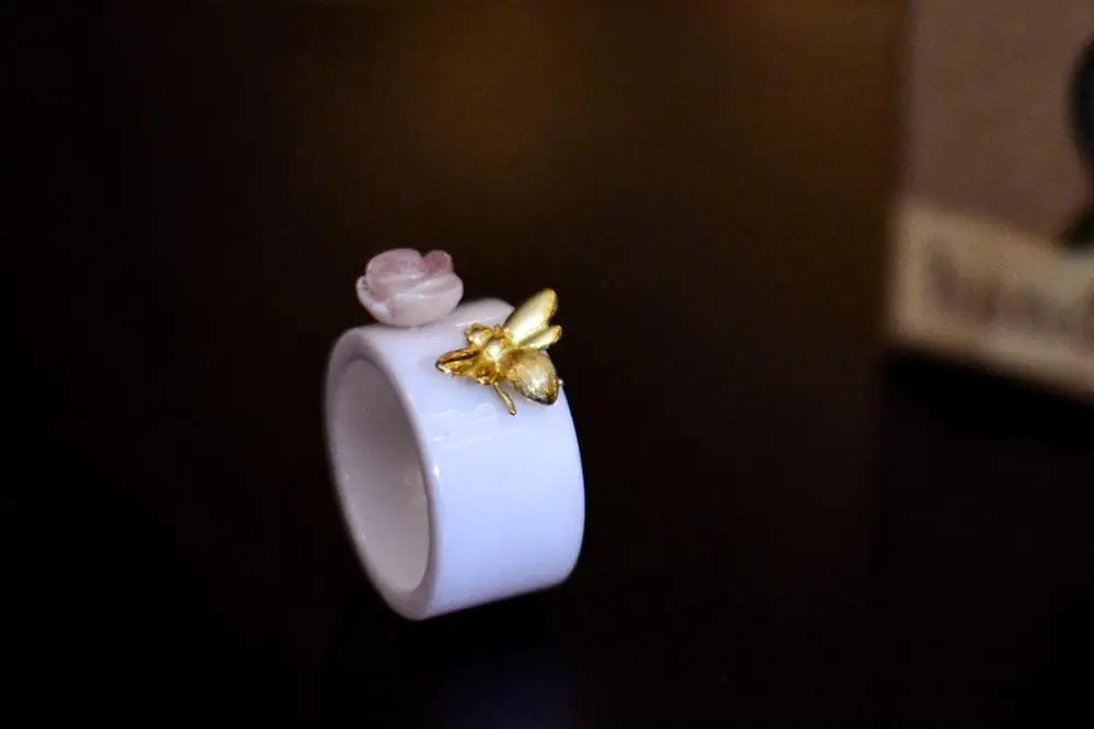 - Design: Fine Ceramic Ring Bee Kiss from a Rose